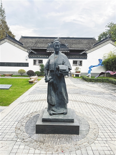 一位身穿红衣的稚童,静静站在黄道婆的雕塑下,小小的身影与先贤的石像久久对望。这一刻,古老的纺织智慧与新生的希望之芽碰撞,文明的薪火仿佛在凝视中悄然延续。