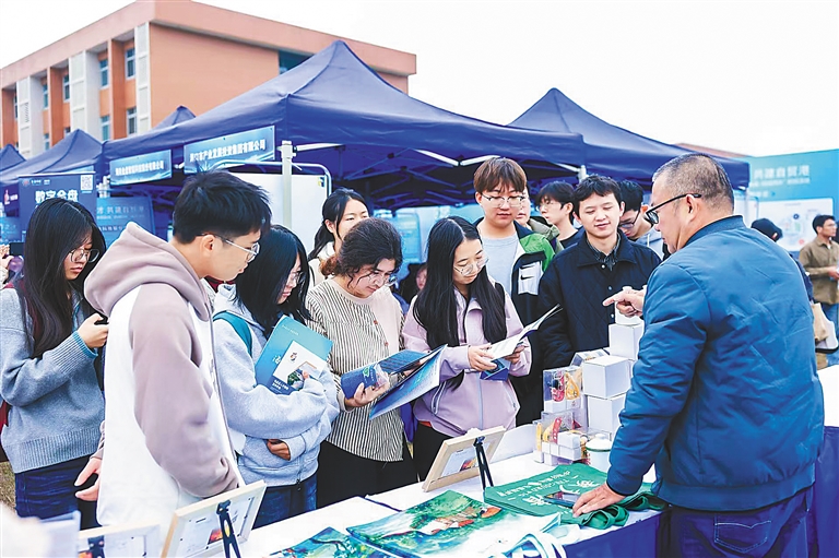 ①10月25日,2025年海南省“封关拓新局·四城同办”校招活动(重庆站)在重庆大学启动。