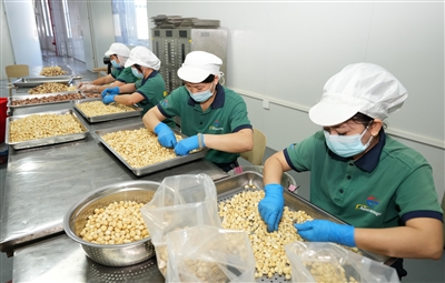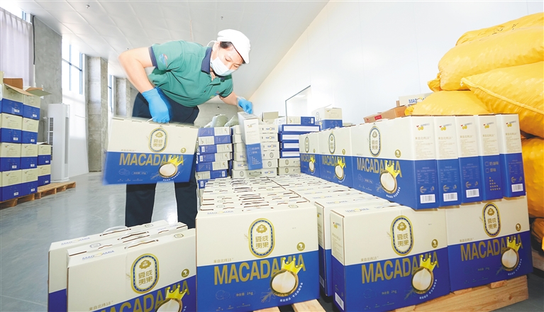 近日,在东方市湘琼先进制造业共建产业园的吻野(海南)食品有限公司,工人在整理打包好的坚果产品,这批产品将销售至欧洲。据悉,该企业聚焦非洲坚果精深加工领域,规划日产坚果制品20吨。