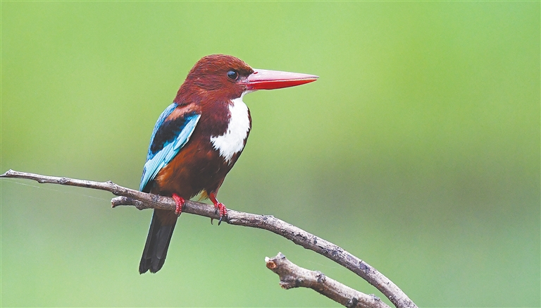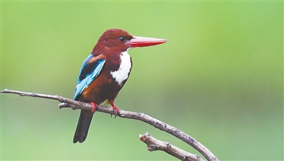 “原以为是一次沮丧的观鸟之旅,结果来了一个大惊喜。”近日,观鸟爱好者张宏涛回忆自己首次拍到白领翡翠的经历,仍十分兴奋。9月22日,他在海口北港岛沿海滩涂发现一只白领翡翠。经海南省鸟类记录中心确认,这是我省首次记录到该鸟种。