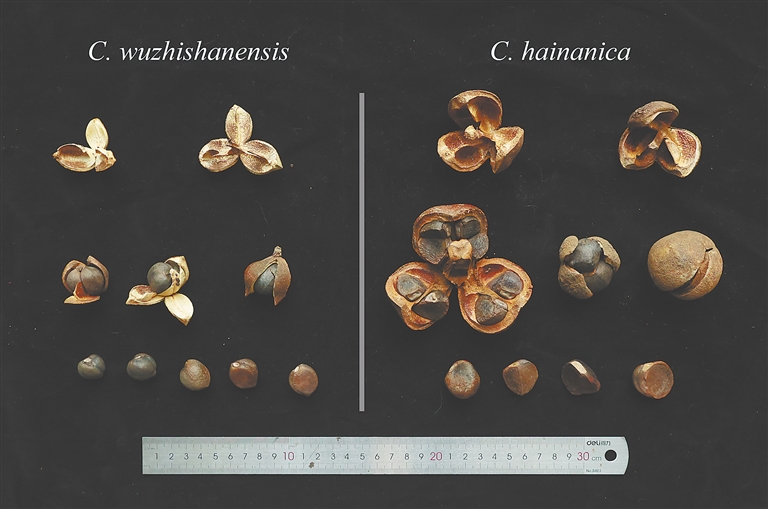 同时,五指山油茶和海南油茶同为十倍体,可以相互正常杂交。“我们可以通过杂交育种,在子代中选育具有果皮薄、果实大、产量高的优良性状的植株,作为油茶新品种进行推广。”赖杭桂说。