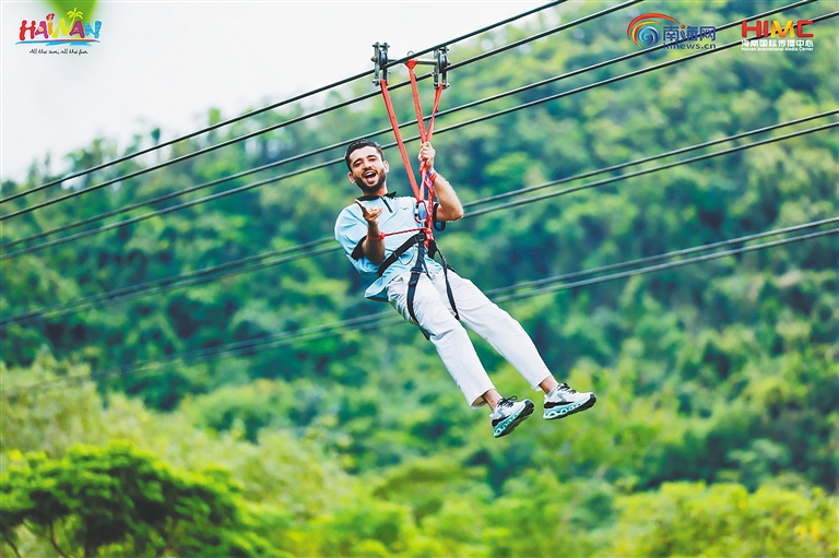 在呀诺达雨林,35位国际推荐官的挑战从峡谷溯溪的腾空飞跃开始。马来西亚的林诗冲在前方,在滑道上捕捉落日,与伙伴挥手互动。这样的体验远超她在其他旅游目的地的类似经历,她说:“时间充裕,视野壮阔,非常值得推荐!”。