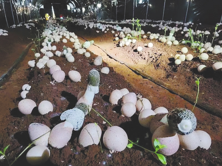 “由于贵州冬季气温低,无法实现在自然条件下栽培,加之设施栽培成本高,每年12月到次年4月,成了红托竹荪的生产空窗期。”王童欣说,而海南的秋冬季节正是红托竹荪生长的“黄金温度”。