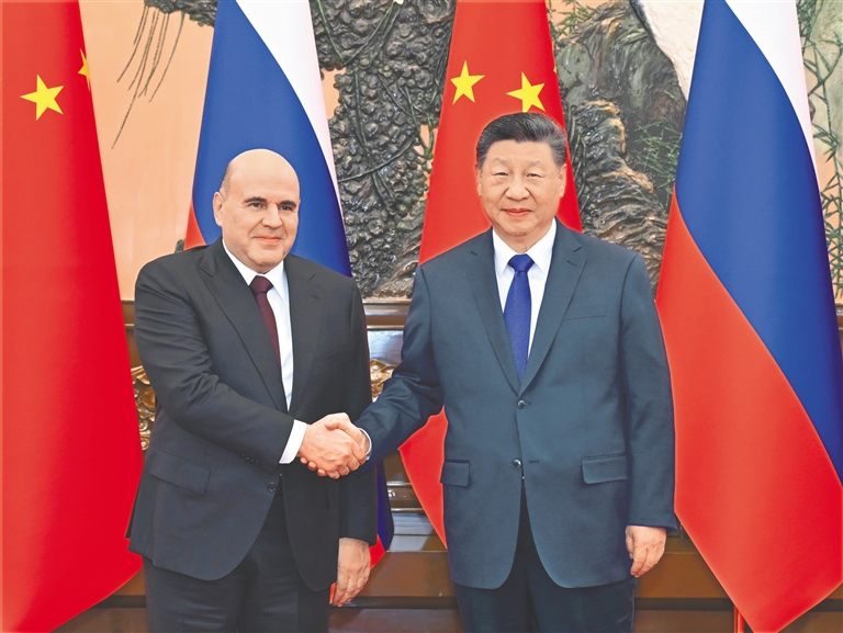 米舒斯京转达普京总统对习近平主席的亲切问候和良好祝愿。米舒斯京表示,祝贺中共二十届四中全会成功举行,相信中国一定会顺利实现“十五五”规划建议确定的目标,取得更大经济社会发展成就。两国元首今年两次会晤,对俄中关系发展作出战略规划,巩固了俄中全面战略协作伙伴关系。俄方愿同中方一道,落实两国元首达成的重要共识,深化经贸、科技、能源、农业、数字经济等领域合作,密切人文交流,加强多边协调配合,推动两国合作取得更多成果。