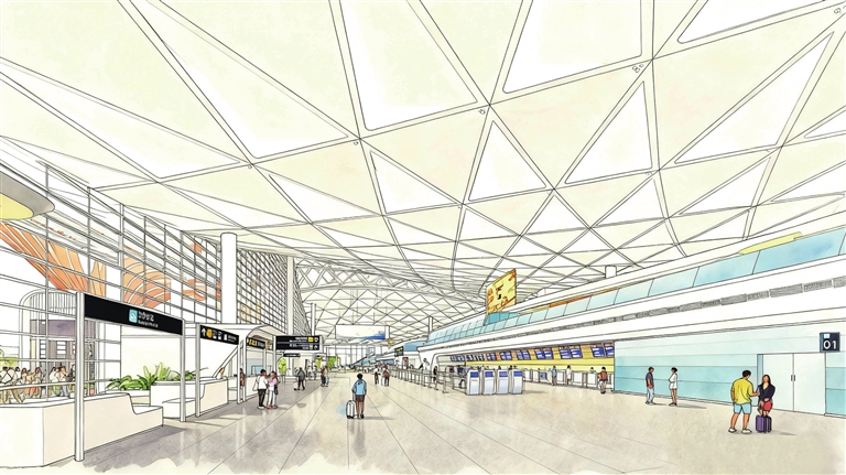 “航站楼内部流程设计的核心是高效。我们从值机到登机的全流程进行了优化,确保各环节的服务水平等级能满足高峰小时容量的需求。”邱小勇说。