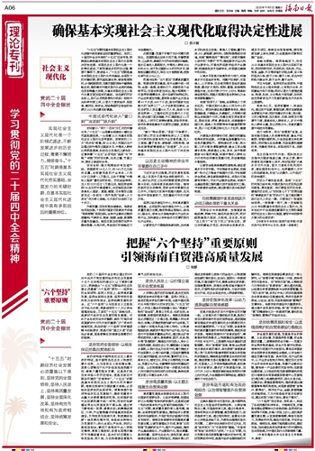 第004版:学习贯彻党的二十届四中全会精神 高标准建设海南自由贸易港