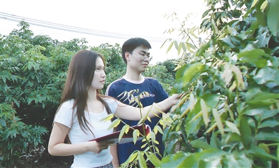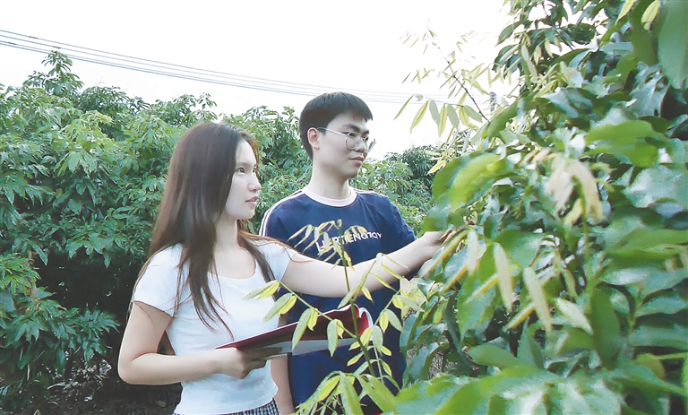海南大学食品科学与工程学院研究生三年级学生郭静怡走入荔枝园中细心查看着荔枝生长情况,详细记录着荔枝施肥和生长情况。这样生动的一幕,正是海南琼山荔枝科技小院的日常写照。