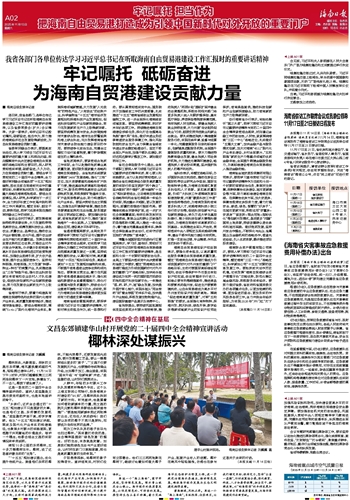 同为工作队队员的杨子良目光也扫过椰林。“其实最打动我的是,全会精神里提到‘绿色发展’的理念。好的生态,本身就是财富。如果我们能把绿色生态与产业更好结合,让村民在家门口就能致富,那也是高质量发展的生动体现。”