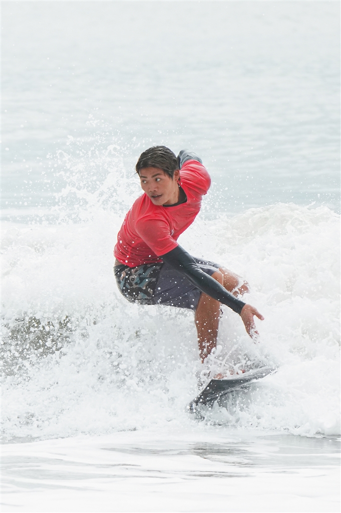 在本届全运会冲浪比赛中,海南共有4名男运动员和4名女运动员参与男子、女子短板项目角逐。在男子短板首轮比赛中,海南队吴世栋、王成征、黄一格、刘琛抓浪准确及时,稳定性和平衡性较高,全部晋级16强。其中,王成征和吴世栋分别取得12.17分和12.16分的高分,成为该轮比赛中仅有的分数突破12分的男选手。
