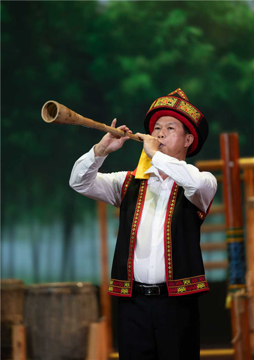 “作品以国家级非物质文化遗产黎族竹木器乐为艺术核心,系统整合黎族传统乐器,并创新性地将舂米桶、牛颈木铃、猪槽等生活器具作为打击乐器纳入舞台表达。这些特色乐器的加入,不仅拓展了音色层次,也体现了黎族人‘物尽其用’的生活智慧与生态观念,强化了民族文化特色。”海南大学国际传播与艺术学院副院长、教授曹量认为,《竹木呈祥》既保留了黎族传统乐曲的特色节奏与音色特征,又加入了现代配器处理,使整体结构在保持民族性基础上更具层次感和可传播性。
