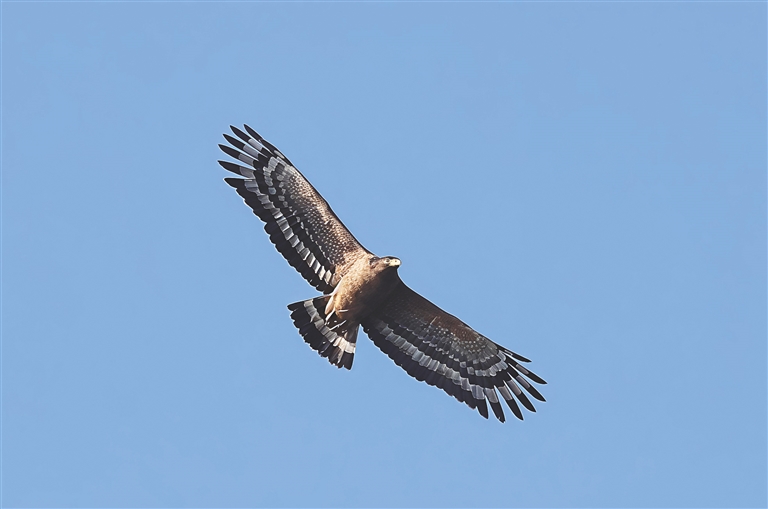 猛禽作为生态健康的“指示剂”,其意义深远。由于处在营养级顶端,环境中的有害物质会通过食物链在猛禽体内富集,此过程被称为生物放大效应。因此,猛禽的种群数量和健康状况,可直接反映当地生态系统的环境质量。“昌江能出现15种猛禽,这就是这里环境洁净、生态健康的有力证明。”薛美丽补充道。