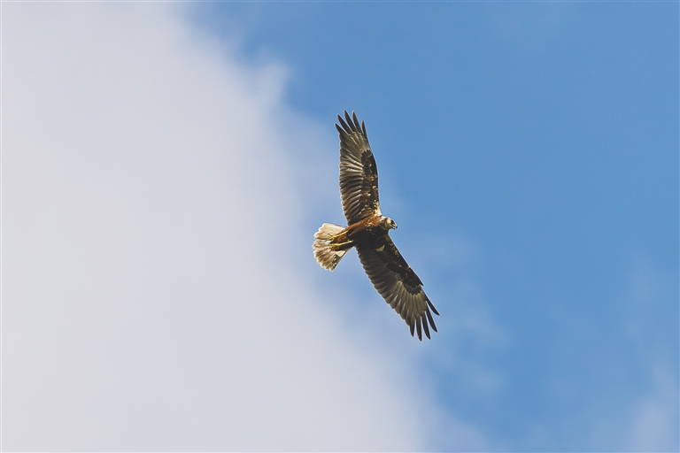 在海尾湿地里,各类鸟儿形态各异、习性不同。在这个复杂的生态网络中,猛禽扮演着“空中王者”和“生态监管者”的角色,对维系这片湿地的生态平衡,有不可或缺的价值。