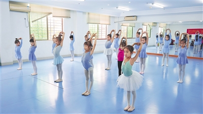 来自椰林镇的居民邓华琼给工作人员交完材料后,便带着6岁的女儿熟门熟路地走向五楼的舞蹈室。“我女儿在这儿学了两年,之前也花钱上过外面的培训班。后来知道社区开了公益课,就一直坚持来。”邓华琼说,从家到社区骑电动车不到5分钟,非常方便。而且这里的教学效果一点也不比外面差,女儿原来腼腆怕生,现在学习了舞蹈变得自信开朗,还交到了好多朋友。