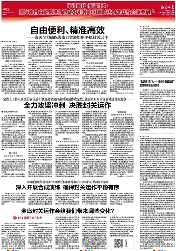 ~~~——海关全力确保海南自贸港如期平稳封关运作