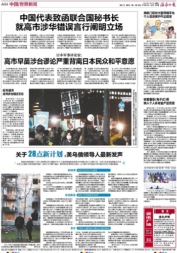 高市早苗涉台谬论严重背离日本民众和平意愿