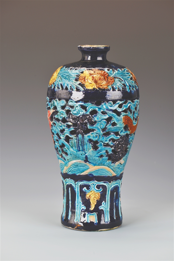 此次出水的多件珐华器,工艺精湛,无疑为研究明代珐华器的生产、外销提供了前所未有的实物资料。其中的一件明代珐华彩贴金镂空应龙纹梅瓶,工艺之精湛、纹饰之华美,让世人得以窥见500年前中国制瓷业的巅峰水准。