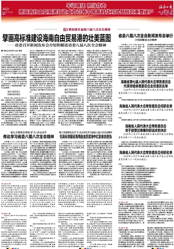 第002版:牢记嘱托 担当作为 把海南自由贸易港打造成为引领中国新时代对外开放的重要门户