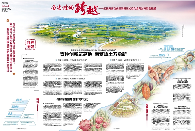 种子是农业的“芯片”,其创新突破直接关系国家粮食安全与农业核心竞争力。即将正式启动全岛封关的海南自由贸易港,聚焦服务国家重大战略,充分发挥自贸港政策优势,持续完善软硬件条件保障,吸引越来越多的科研工作者投身这片热土,持续探索实现育种技术突破,种业现代化产业集群成型起势,形成发展新质生产力的新赛道。