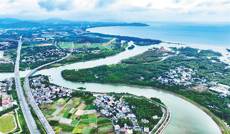 站在椰子洲岛上,藤桥河入海的轨迹清晰可见;抬头仰望,跳伞基地的直升机正腾空而起,在天际划出向上的弧线。海丰村生机勃发的图景,就这样在眼前层层铺展。