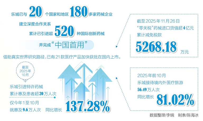 如今,乐城已与20个国家和地区的180多家药械企业建立深度合作关系,累计已引进超520种国际创新药械并完成“中国首用”。其中,借助真实世界研究路径,已有21款产品加快获批在国内上市,3款产品被纳入国家医保药品目录,政策红利正切实转化为患者可及的健康福祉。