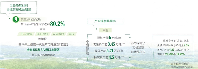 “从‘禁塑’初期到现在,省内全生物降解材料产业从无到有,不断发展壮大。”省工业和信息化厅总工程师黄家林介绍。