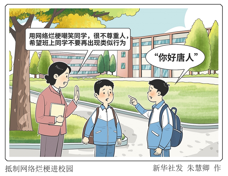 “我不知道这个网梗是什么意思,就去网上搜,结果越看越生气……”不久前,重庆一名初中班主任在社交平台上发布“抵制网络烂梗进校园”的视频,引发热议。这名教师发现有学生用“唐人”“你好唐人”等网络烂梗嘲笑同学后,随即对其进行了批评教育。
