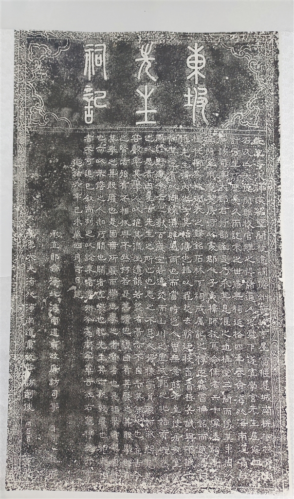 今年11月8日第三届中国(海南)东坡文化旅游大会在澄迈举办,海南省图书馆向国家图书馆申请复制了国图所藏东坡海南金石拓片,使得遗失的三通石刻,以拓片的形式回归,将文字和样式展示给读者。《通潮飞阁碑》拓片的碑文《重建通潮阁记》,为道光十六年(1836年)澄迈训导李梓瑶撰,光绪《澄迈县志》未收录,可供东坡文化研究者拾遗补缺。