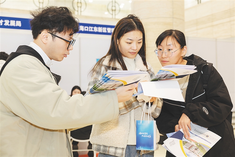 “一来到海南就有一种亲切感,我喜欢这里的热带气候环境和人文环境,更看重海南自贸港建设机遇,希望海南成为我的‘第二故乡’。”原籍吉林省的阳筱琦透露,她大学学的是国际贸易专业,已与海南一家企业达成就业意向。