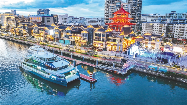 当夕阳为天空披上绚丽彩衣,海口湾“美兰1号”观光船的汽笛声悠扬响起,载着满怀期待的游客驶入椰城醉人的夜晚。这动人的画面,是美兰区以文旅深度融合激发消费新活力的一个缩影。