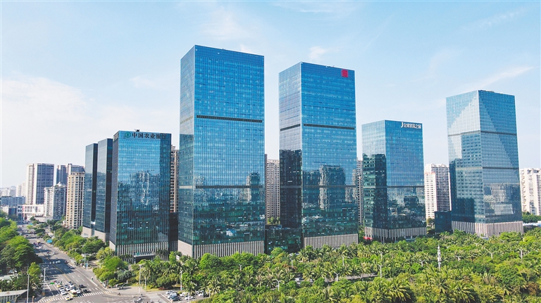 站在海口国兴大道远眺,海南大厦、全球贸易之窗等现代化楼宇鳞次栉比,玻璃幕墙折射出活力之光,这里正是加速崛起的大英山金融中心。