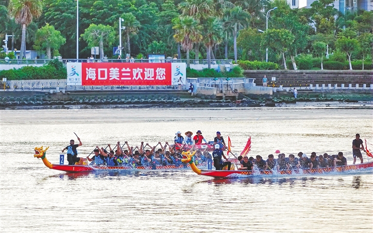 周末的星海湾广场老爸茶餐厅内座无虚席,远眺南渡江入海口波光粼粼的江面,龙舟赛的激荡喧嚣仿佛仍在眼前环绕。