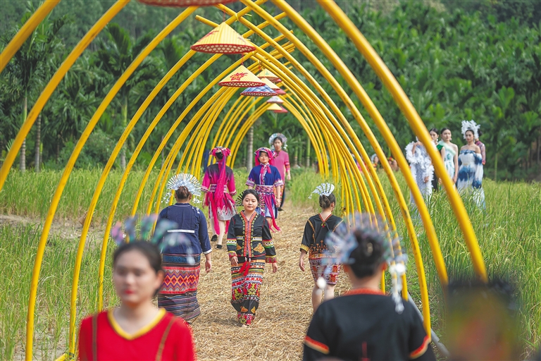 作为海南黎族文化发祥地之一,白沙孕育了双面绣、老古舞等8项国家及省级非遗,坐拥“中国黎族双面绣之乡”等美誉。依托深厚文化底蕴与“山的世界、水的源头”的生态禀赋,白沙沿环热带雨林国家公园旅游公路打造特色村寨,建成山兰稻作文化公园、民俗博物馆等体验区,让传统婚俗、鱼茶肉茶等非遗在保护中传承。