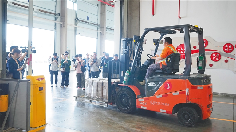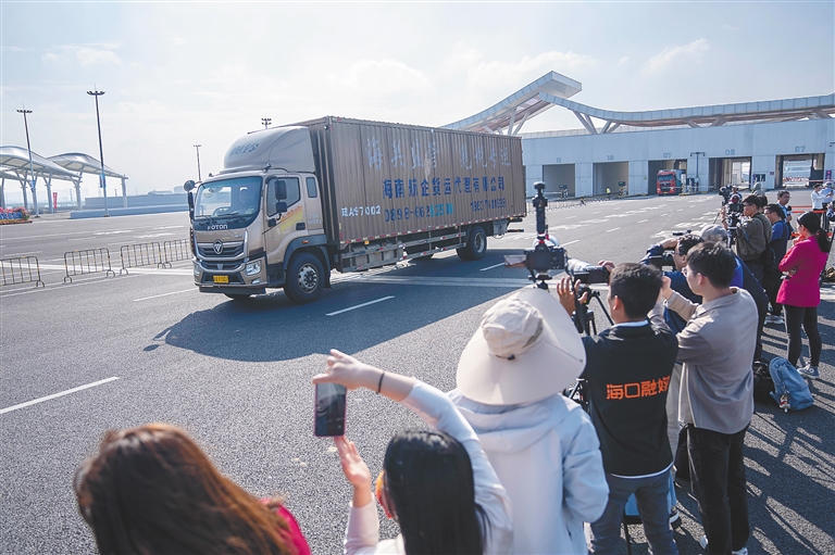 | ②12月18日,在海口新海港和南港“二线口岸”(货运)集中查验场,第一批海关监管货物顺利通行。海南日报全媒体记者 李天平 摄 |