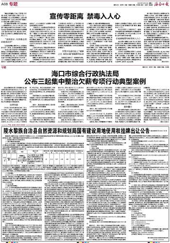 海口市综合行政执法局 公布三起集中整治欠薪专项行动典型案例