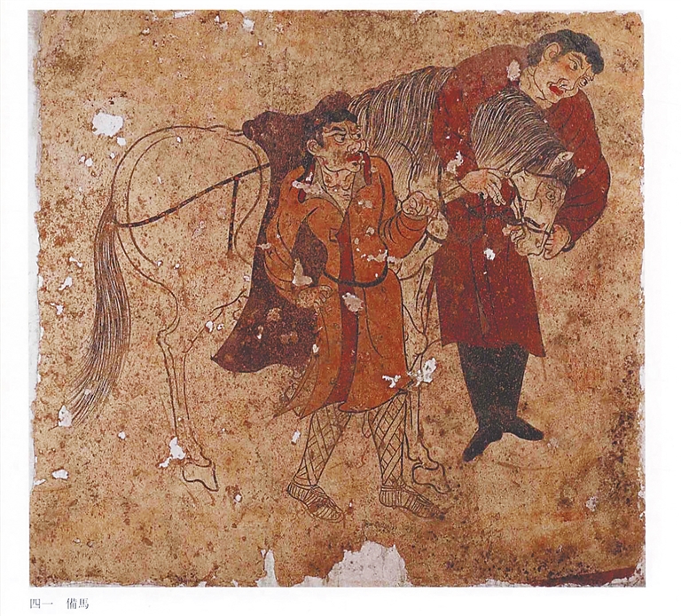 这些绘画创作并非源于艺术创作的自觉性。当观赏了一定量同一时期的墓室壁画后,观者就会发现,大多数作品似乎已经形成了一定的创作定式,人物造型的角度、构图,甚至内容,无一不是如此。创作者的创作有一套可靠的底稿可依循,即使是不同的题材,画匠也可以创造性地在底稿上增减内容,赋予不同的榜题(在画面旁边写上画题),从而形成新的画面。