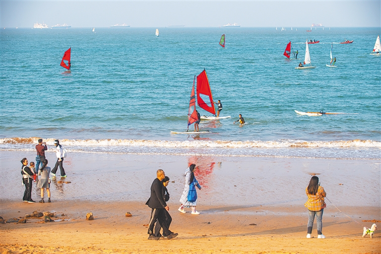 一月五日,不少市民游客在海口西海岸漫步,感受冬日暖阳。 海南日报全媒体记者 袁琛 摄