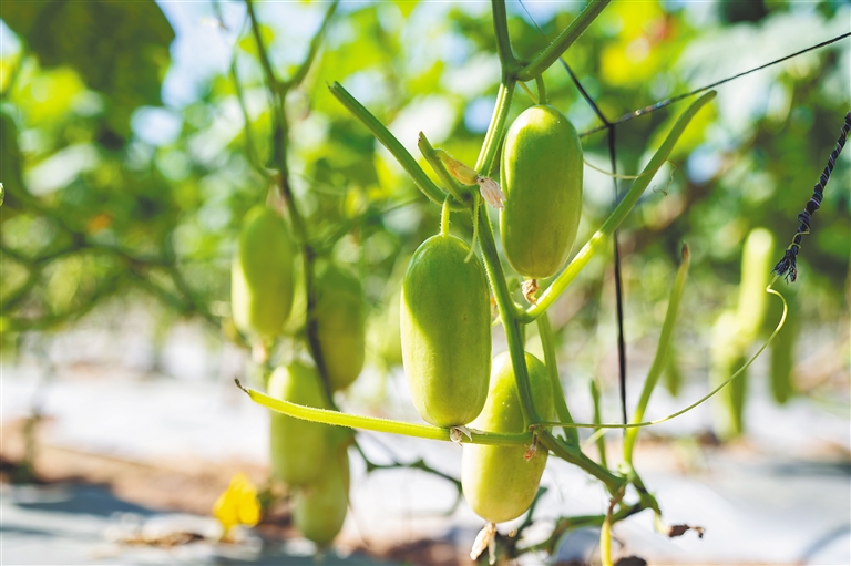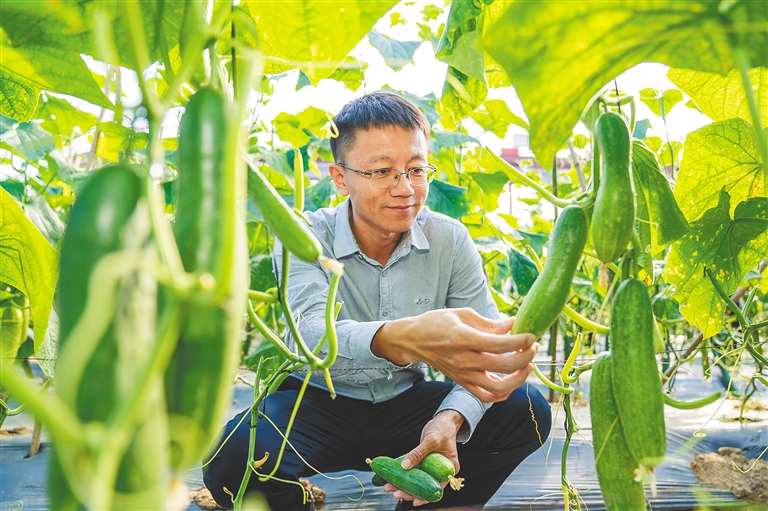 玲珑短小、毛绒多刺的黄瓜散发着浓郁香气;色如白玉、光滑无刺的黄瓜在阳光下闪着润泽的光;色泽亮绿、身形窈窕的黄瓜满布瓜藤……走进三亚市崖州区国家现代农业(种业)产业园,人们惊奇地发现,餐桌常客黄瓜也能千姿百态。