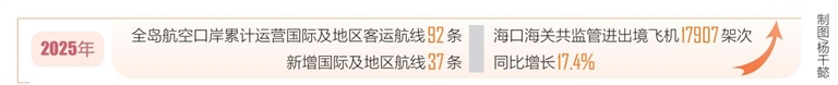 2025年,全岛航空口岸累计运营国际及地区客运航线92条,新增国际及地区航线37条,包括全国首条投入运营的“第七航权”三亚⇌布拉格航线、2条第五航权客运航线,以及4条开通国际航班国内段客运业务的国际航线等,航线网络覆盖东北亚、东南亚、欧洲、大洋洲等核心区域,进一步织密海南自贸港联通世界的“空中桥梁”。