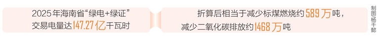 作为风光资源大省,海南近年来持续加快清洁能源岛建设,不断完善“绿电+绿证”交易机制。依托全国统一电力市场和南方区域绿色电力市场交易规则体系,海南电力交易中心推进可再生能源绿色电力证书全覆盖,为经营主体提供便捷高效的交易服务,有效激发了市场活力。
