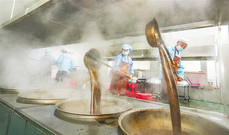 “开榨咯!”1月16日,位于儋州市白马井镇学兰村的“海儋土糖”生产基地又热闹起来,工人们忙着榨蔗、熬糖、晒糖。浓郁的糖香随风飘入村庄的每一条小巷。