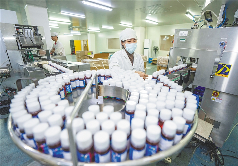 1月20日,位于海口国家高新区药谷工业园区的万特制药(海南)有限公司内,生产线正开足马力赶制订单,呈现出一片繁忙景象。