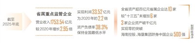 截至2025年底,省属重点监管企业资产达7798.54亿元,是2020年底的3.68倍;营业收入1753.54亿元,较2020年增长2.95倍;实现利润33.52亿元,为2020年的2.2倍;资产负债率38.3%,保持全国最低水平。