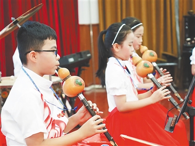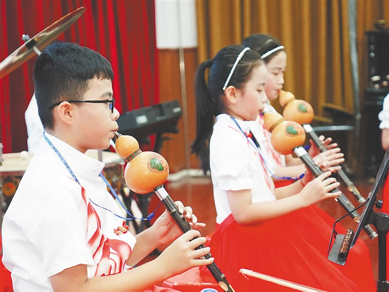 走进金江中心学校,“五色花”校本课程框架搭建起五育融合的桥梁。民乐团、合唱团、跆拳道等16个特色社团蓬勃发展,每周固定课时开展活动,超60%的学生热情参与。该校六年级学生张熙祥说:“加入民乐团后,我学会了吹笛子、葫芦丝和拉二胡,收获了很多快乐。”