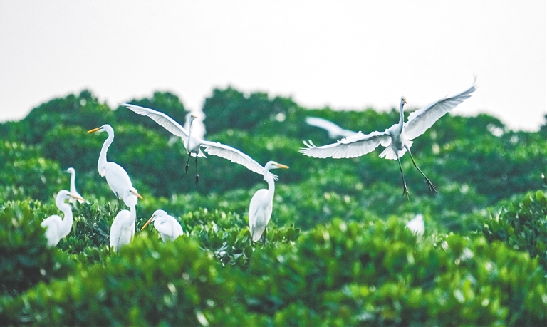 以海口为例,拥有中国面积最大的连片红树林保护区,丰富的湿地生态系统让数以万计的候鸟在此越冬;以观鸟爱好者都熟知的白沙门公园为例,由于处于候鸟抵达海南的第一站,每年冬天来临的时候,小小的公园内汇聚大量外地候鸟,让观鸟者叫绝。而儋州湾湿地是复合型滨海湿地,涵盖红树林、海草床等多种生境,目前已观测到黑脸琵鹭、勺嘴鹬、彩鹮等濒危物种。作为全球极度濒危物种勺嘴鹬的稳定越冬地,儋州湾湿地已经成为来海南观鸟人群必打卡地。
