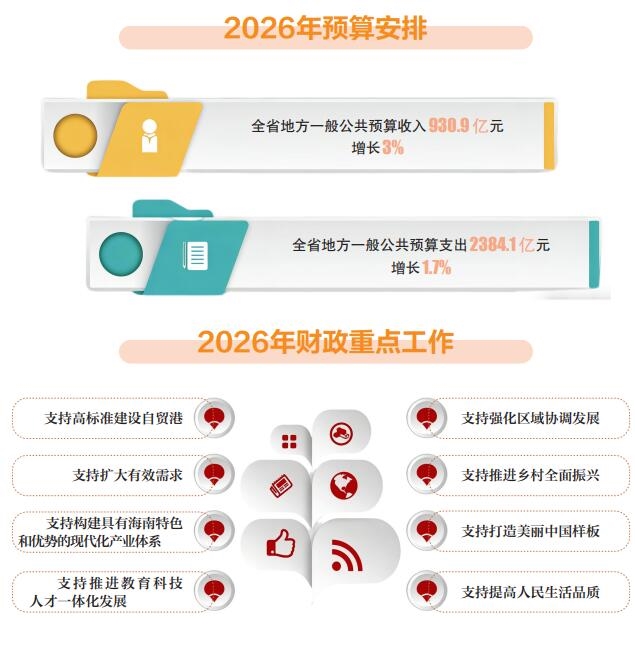 省财政厅相关负责人介绍,2026年是“十五五”开局之年,也是海南自由贸易港全面实施封关运作开局之年,做好预算编制和财政经济工作意义重大。