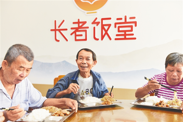 南坤镇坡林村长者食堂内,王丕明等老人们围坐圆桌,品尝瘦肉焖萝卜、豆芽炒粉丝等菜肴,再喝上半碗冬瓜海白汤,暖胃又暖心。目前,屯昌已在南坤、西昌、新兴、乌坡等镇稳步推广长者食堂,并实施分类补贴政策,托起老年人的幸福“食”光。