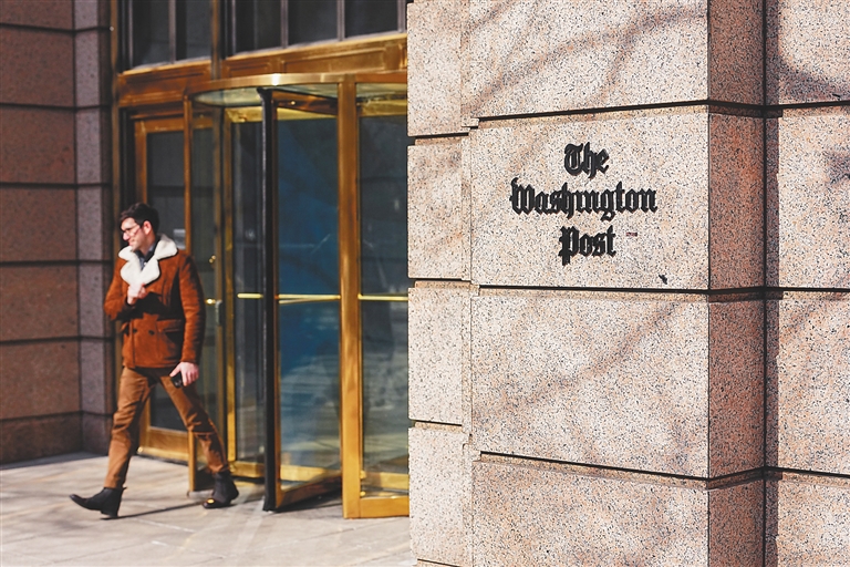 图为2月4日一名男子走出《华盛顿邮报》总部大楼。新华社/路透