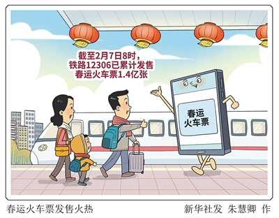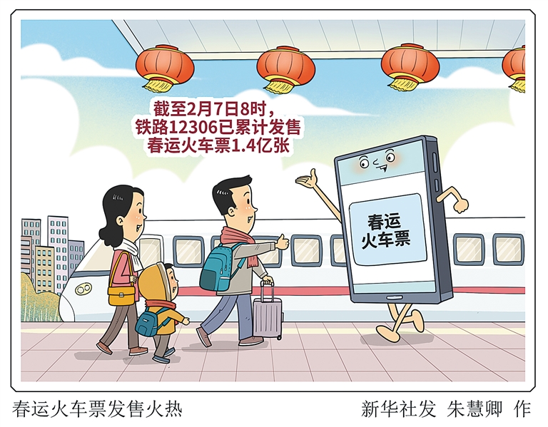 新华社北京2月7日电 (记者樊曦)记者从中国国家铁路集团有限公司获悉,2月7日开始发售2月21日(正月初五)车票。截至2月7日8时,铁路12306已累计发售春运火车票1.4亿张。
