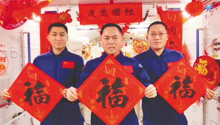 马年春节的脚步日益临近,神舟二十一号航天员乘组贴春联、写福字,把中国人的太空家园装扮得红红火火,第一次在太空过大年的航天员武飞说:“马年当有奔马的闯劲,让我们继续为梦想奋斗、为幸福打拼。”;上海浦东国际机场四期扩建工程航站区国际主楼钢屋盖全面开吊,城市建设者姜阳奋斗在一线,建成后的T3航站楼远看如飞鸟翱翔之姿;重庆果园港,数艘巨轮靠泊待发。“春节不打烊,新能源汽车零配件等货物出口不停。”重庆果园港埠有限公司生产部值班主任陈烨说,新一年的“中国造”从这里出发,连接起更广阔的世界。