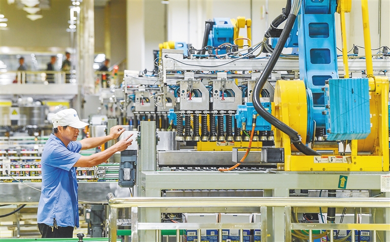 不远处的全自动灌装线上,铁罐有序流转,灌装、密封、贴标一气呵成,让游客们纷纷低声赞叹。